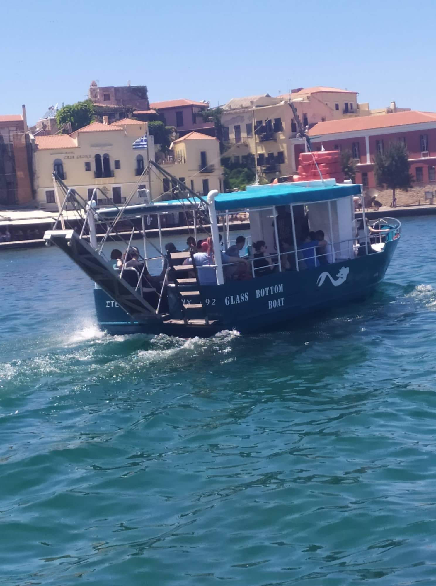 We sail to Theodorou, the famous "kri-kri" island where you can view the wild cretan goats and the ruins of an old venetian fortress.